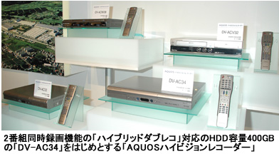 32・37V型の液晶テレビは価格競争が激しいが、シャープではテレビを核とした連動機能という利便性を打ち出すことで、ユーザーの囲い込みを狙う。同時に、半数程度はテレビとレコーダーをセットで販売し、収益性を高めたい考え。