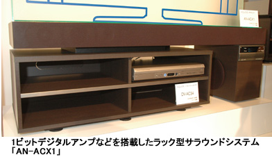 「AQUOSファミリンク」対応のラック型サラウンドシステムは、1ビットデジタルアンプとドルビースピーカーなどを装備した37-45V型用の「AN-ACX1」(実勢価格:13万5000円前後)と32-45V型用の「AN-ACY1」(12万5000円前後)の2モデルを発売する。
