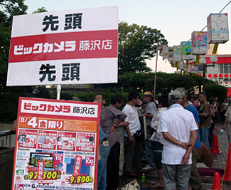 ビックカメラ(宮嶋宏幸社長)は8月4日、神奈川県藤沢市のJR藤沢駅北口駅前に「ビックカメラ藤沢店」をオープンした。神奈川県内では、横浜西口店、パソコン館横浜駅前店、新横浜店に続く4店舗目。開店前から予想を上回る約2000人の行列ができ、親子連れから中高生、高齢者まで幅広い年齢層が来店、店内は人で埋め尽くされた。