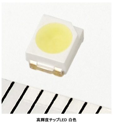 新製品では、反射効率の高い構造設計や蛍光材料の改良を施すことで、白色で光度2000mcdを実現したほか、各色でそれぞれ業界最高レベルの500mcd-1500mcdの光度を達成した。環境規格のRoHS指令にも対応する。チップのサイズは3.2mm×2.8mm×1.9mm。
