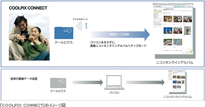 ニコン(苅谷道郎社長)は8月24日、無線LANを使ってパソコンを介さずカメラから写真をインターネット上のオンラインアルバムにアップロードできる「COOLPIX CONNECT」を9月29日から開始すると発表した。利用料は無料。