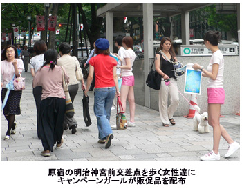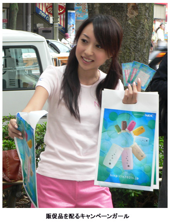 今回のキャンペーンでは、ターゲットの年齢層の女性が歩く街を選択し、直接商品をアピールする。「商品発売と同時に、全国規模での街頭キャンペーンを行うのは初めての試み。若い女性ユーザーの皆さんは、当社のWebサイトの商品説明はあまり利用してくれない。直接商品を知ってもらうことを狙って、街頭キャンペーンを実施することとした」(NEC担当者)