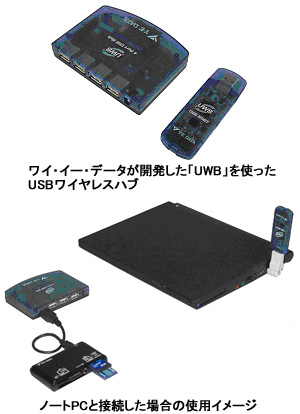 ワイ・イー・データ、無線技術「UWB」使ったUSBワイヤレスハブ