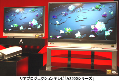 このほか、リアプロジェクションテレビ「A2500シリーズ」も発表した。50V型と60V型の2機種で、フルHD対応の反射型小型液晶ディスプレイパネル「SXRD」と「ライブカラークリエーション」、「ブラビアエンジンプロ」を搭載。映画などを高精細な映像で楽しめる。