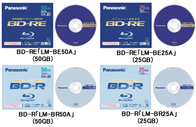 同時に、ノンカードリッジタイプで、2倍速の録画用書き換え型ディスク「BD-RE」、追記型ディスク「BD-R」も発表した。BD-REでは容量50GBの「LM-BE50A」、25GBの「LM-BE25A」、BD-Rは50GBの「LM-BR50A」、25GBの「LM-BR25A」、また25GBディスクの3枚パック「LM-BR25AP3」をレコーダーと同時に発売する。