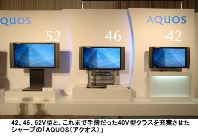 シャープは40V型台モデルでは、これまで45V型を1機種しか販売しておらず、この市場では苦しい戦いを強いられてきた。しかし、亀山第2工場モデル投入で「タマが揃った」(片山専務)として、巻き返しを図る。