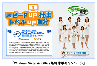 第1弾として、ビジネスPCユーザーを対象にした「Windows Vista」と「the 2007 Microsoft Office system」の無料トレーニング「Windows Vista & Office無料体験キャンペーン」を10月10日から07年3月31日まで実施。一般ユーザー向けは来年初頭にも開始する予定。