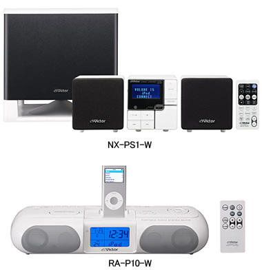 日本ビクターは10月10日、iPodなどの携帯オーディオや携帯電話の音楽を再生するコンパクトコンポーネントシステム「NX-PS1-W」を12月上旬に、ポータブルオーディオシステム「RA-P10-W」を11月上旬に発売すると発表した。価格はオープンで、実勢価格は「NX-PS1-W」が3万3000円前後、「RA-P10-W」が1万5000円前後の見込み。