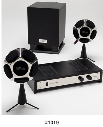 03年に発売した12面体スピーカーに、アンプ、サブウーハーを加えて販売するもの。正12面体の各面にフルレンジのスピーカーユニットを搭載し、無指向性で音を出すのが特徴。きょう体にステンレスを使用しユニットには高性能磁性体ネオジウムを使用。防磁設計のため、ディスプレイの近くに置いても画面への影響がない。