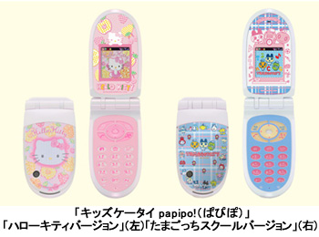 同時に、女の子向け端末でも「ハローキティバージョン」と「たまごっちスクールバージョン」の新端末を発売すると発表した。価格はともにオープン。実勢価格は9800円前後の見込み。