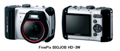 一方、「FinePix BIGJOB HD-3W」は03年に発売した「BIGJOB HD-1」の後継機種。CCDは有効604万画素で、35mmフィルム換算で28-84mmの光学3倍ズームレンズを搭載。撮影感度はISO1600まで対応する。