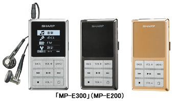 シャープは11月9日、フラッシュメモリとminiSDカードスロットを搭載したカードタイプの携帯オーディオ「MP-E300」「MP-E200」を11月24日から順次発売すると発表した。価格はオープン。実勢価格は1GBのメモリを内蔵した「MP-E300」が2万1000円前後、512MBの「MP-E200」は1万6000円前後の見込み。