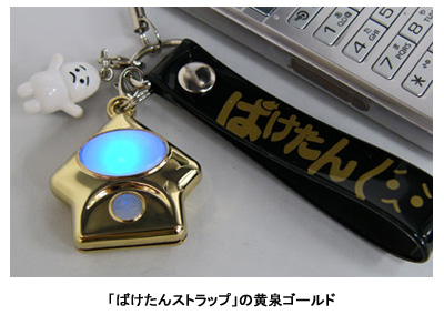 「ばけたんストラップ」は、磁界の変化によって発生するノイズから「お化けを発見できる」というストラップ。これまで発売してきたシルバーメッキ版の「念波メタル」、クロームメッキ版の「丑三つメタル」に続く限定カラーシリーズの「三段活用の締め」(同社)となる限定モデル。きょう体には「古来から人々を魅了し続けてきた」金色を採用した。同社では「人だけではなくお化けもひきつけるかも」とコメントしている。