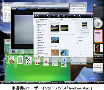 もう一つ、Vistaから新しく採用される半透明表示のユーザーインターフェイス「Windows Aero」などが利用可能なPCに与えられる「Windows Vista Premium Ready PC」という認定もある。要求される動作条件は「1GBのメモリ」「40GBのHDD容量と15GBの空き容量」「DVD-ROMドライブ」など多岐にわたり、ハードルはより高くなる。