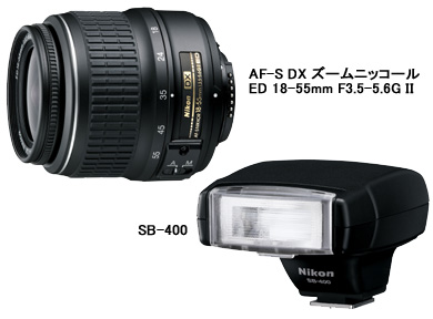 同時にズームレンズと小型外付けフラッシュも発表した。ズームレンズ「AF-S DX ズームニッコール ED 18-55mm F3.5-5.6G II」は12月1日に発売で、価格は2万1000円。焦点距離は35ミリフィルム換算で27-82.5mm。レンズの明るさはF3.5-5.6で、重さは205g。カラーはブラックとシルバー。