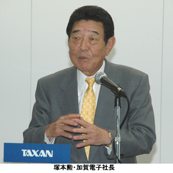 第1弾は、100%子会社の加賀電子コンポーネントが開発したDLP方式のビジネス向けプロジェクター「TAXAN U6シリーズ」3モデル。07年1月10日に発売する。ラインアップは、画素数が1024×768、明るさが2500ルーメンの「U6-232」、画素数1024×768、明るさ2000ルーメンの「U6-132」、画素数800×600、明るさ1800ルーメンの「U6-112」。