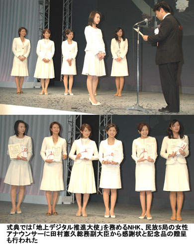 式典に出席した橋本元一・NHK会長は「11年までに手間と時間、おカネがかかる中継局の建設と同時に(デジタル技術を使った)視聴者へのきめ細かなサービスが重要になる」と語った。広瀬通貞・民放連会長も「これから先が大変な時期になると自覚している」と述べた。