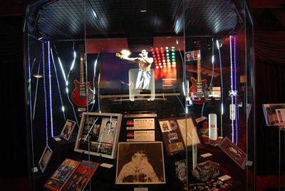 「QUEEN」の貴重な資料、写真、現役時代のギターなどの展示の中央に、