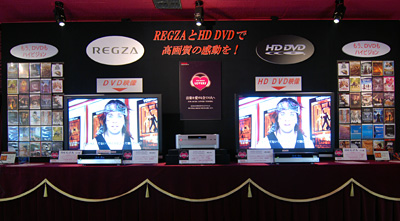 会場での展示で一番力が入っているのは、やはりテレビとDVDだ。東芝の高画質大画面テレビ「REGZA」のフルHDモデルを使い、HDD/DVDレコーダー「VARDIA」を組み合わせて、通常のDVDと、次世代DVD規格である「HD DVD」の画質を比較して見せる展示がとくに目を引く。両者を見比べると、その差はあまりにも歴然だ。実際、「HD DVD」の映像がこれほど高精細で美しいとは、筆者にとってある種カルチャーショックだった。