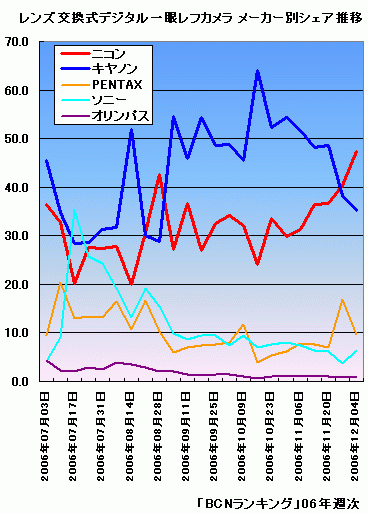 ●D80とD40効果でメーカーシェアトップを獲得したニコン