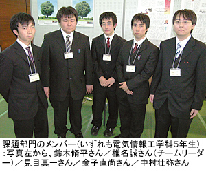 プロコンへの参加を通じて課題も残った。これまで2─5年生までバランスよくメンバーを揃えることで、「ノウハウを次年度に引き継げるよう心がけてきた」(電子制御工学科の南斉清巳・助教授)。しかし今回はメンバーが揃わず課題、競技部門ともに全員が来年春に卒業予定の5年生のみになった。卒業までの残された時間で今年の入賞経験をどう後輩に伝えるかが、来年の成績を大きく左右しそうだ。