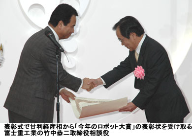 経済産業省はロボット市場の創出に貢献したロボットを表彰する「今年のロボット大賞」を創設、第1回の「『今年のロボット』大賞2006」を12月21日に発表した。152件の応募の中から大賞に選ばれたのは富士重工業と住友商事が開発したビル清掃ロボット「RFS1」。同日には、東京・青山で表彰式が行われた。式には甘利明・経済産業大臣も出席した。