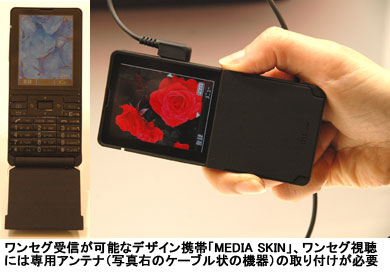 新端末ではワンセグが受信できる端末を7機種投入する。目玉となるのは、独自のデザインプロジェクト「au design project」で開発した「MEDIA SKIN(メディアスキン)」。