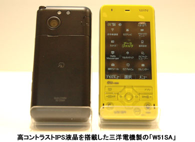 ワンセグ対応端末では、カシオ計算機製「W51CA」、三洋電機製「W51SA」の2機種で、視野角が170度で2.6インチのIPS(横電解)液晶をディスプレイに採用。画面の高画質化を図った。