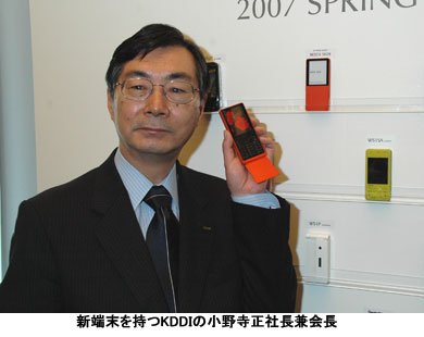 昨年10月にスタートしたナンバーポータビリティ(MNP)では一人勝ちとなったKDDIだが、小野寺正社長兼会長は「MNPは一時的なものではなく、導入された後も永遠に続く。(利用者の獲得には)音楽から映像機能へといった(顧客の)満足度向上に尽きる」と手綱を緩めない姿勢を強調した。