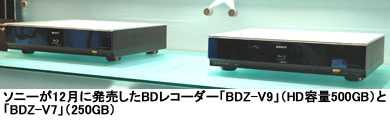 ソニーもBDレコーダーを「放送、映画など家庭に入るあらゆるコンテンツを楽しむための中核となる商品」(西谷清・コーポレート・エグゼクティブSVP)と位置付け、「BDZ-V9」と250GBの「BDZ-7V」を松下に続き12月に発売した。