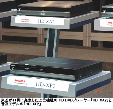 BD陣営が攻勢をかける中、東芝でも「次世代DVDのHD DVDを急速に普及させる」(藤井美英・執行役上席常務・デジタルメディアネットワーク社社長)ことを狙い、「HD-XF2」「HD-XA2」を12月下旬から発売すると発表。年末商戦では東芝、松下、ソニーの三つどもえの戦いとなった。