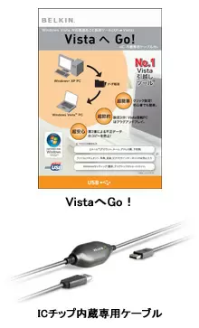 丸紅インフォテックは1月17日、Windows Vista搭載のPCへデータや操作環境を移行するソフト「VistaへGo!」を2月上旬に発売すると発表した。価格は3980円。引っ越し元PCの対応OSはWindows XPのみ。開発は米BELKIN社。引っ越し元PCに同ソフトをインストールし、付属のICチップ内蔵専用ケーブルで引っ越し先PCと接続すれば、自動的にウィザードが起動する。電子メールや各種ファイル、ユーザーアカウントなど、移行したい項目を選択するだけで自動的にデータを転送する。「丸ごとおまかせモード」も装備し、初心者でも簡単に移行作業が行える。引っ越し先PCの再セットアップは不要。