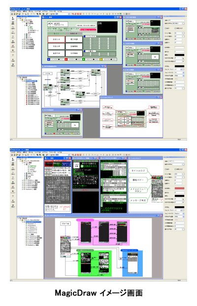 作成した番組企画案は、付属ソフト「MagicDraw Viewer(マジックドロービューアー)」で、画面遷移プレビューやイベント内容の確認を番組関係者全員で行える。BMLオーサリングソフト「Foliage(フォーリッジ)シリーズ」にデータを送り、BMLコンテンツを自動生成させることも可能。対応OSはWindows XP。