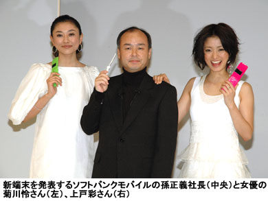 さらに、今月、米アップルが発表した音楽プレーヤー付きの高機能携帯電話について「アップルの携帯は素晴らしいが、日本は携帯電話が世界で一番進んでいる国。その日本で最も進んでいる携帯電話会社(の端末)が世界で最も進んでいる携帯だ」と述べた。