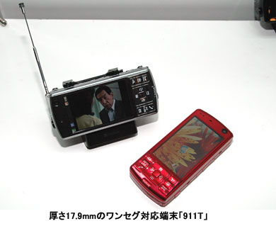 薄型ワンセグ端末では、厚さ17.9mmとスライド式では最薄の東芝製「911T」を発売する。480×800ドットのワイドVGA3インチ液晶を搭載し、1GBの内蔵メモリを装備。下りの通信速度が3.6Mbps(メガビット/秒)の3.5世代(3.5G)携帯電話「HSDPA」に対応する。