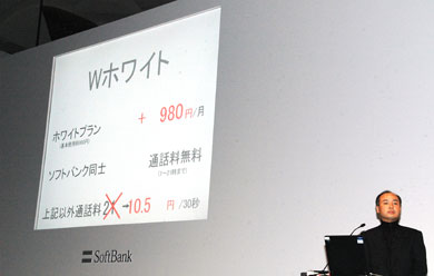 「Wホワイト」に加入した場合、ホワイトプランでは21-1時の間で30秒で21円だったソフトバンク同士の通話料を10.5円に割り引く。1-21時まではホワイトプラン同様、ソフトバンク同士の通話料は無料。