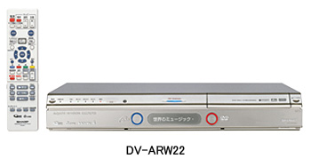 「DV-ARW22」は、地上・BS・110度CSデジタルチューナーを搭載した地上デジタル放送(地デジ)対応モデル。デジタルチューナーをそれぞれ2基ずつ搭載し、デジタル放送をハイビジョン画質で2番組同時に録画できる。スタートメニューは基本操作の「再生・編集」「予約」「ダビング」が大きく表示され、シンプルでわかりやすい。本体液晶に番組名が表示されるなど、細かな工夫も施されている。