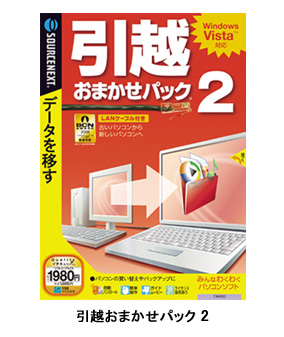 バックアップソフト全体のランキングで早くも1位を獲得したソースネクストの「引越おまかせパック 2」は、2台のPCを付属のLANケーブルでつないでデータを移行するソフト。「2」になってメールやInternet Explorerなどのシステム環境を移行する「環境の引越」にも対応した。もちろんデータ類を移行する「ファイルのコピー」も可能。価格が1980円と安価なのが人気の理由だろう。