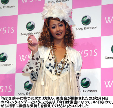 ソニー・エリクソン・モバイルコミュニケーションズは2月14日、au(KDDI)に供給する第3世代(3G)携帯電話「W51S」の新CM発表会を開催した。発表会にはソニー・エリクソンの久保田幸雄社長をはじめ、CMキャラクターに起用された女優の沢尻エリカさんも登場した。