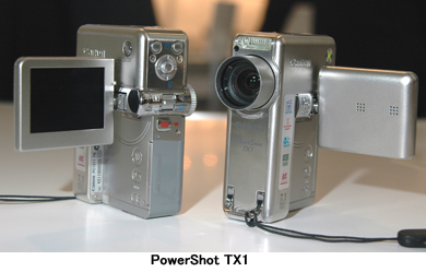 一方、「PowerShot」シリーズでは「TXシリーズ」を新たに投入。第1弾「TX1」は、デジタルビデオカメラのような縦型の本体に有効710万画素のCCDと35ミリフィルムカメラ換算で390-390mmの沈同式光学10倍ズームレンズを搭載。モニターを見ながら片手で撮影する。