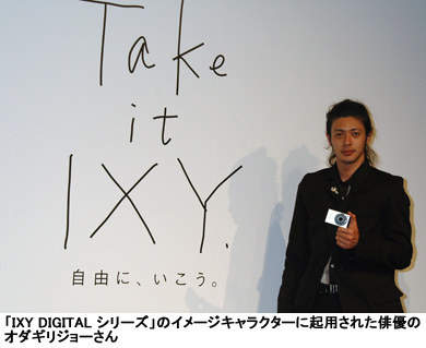 キヤノンでは同時に、「IXY DIGITAL シリーズ」のイメージキャラクターに俳優のオダギリジョーさんを起用すると発表した。同シリーズのイメージキャラクターはこれまで元サッカー日本代表選手の中田英寿さんが務めていた。