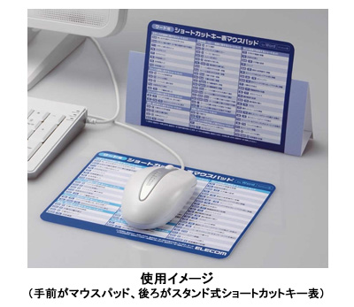 同様に「MP-103BU」はExcelのショートカットを、「MP-104BU」はWordのショートカットキーをプリントした。マウスパッドに加え、スタンド式のショートカットキー表もそれぞれ付属する。