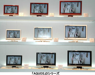液晶テレビの「AQUOS」Dシリーズは、解像度が水平1366×垂直768画素の標準ハイビジョン(標準HD)仕様。32、26V型モデルには視野角が上下左右176度の「ブラックASV液晶」、20V型モデルには「ASV液晶」を搭載する。内蔵チューナーは、地上・BS・110度CSデジタルチューナーが1基。