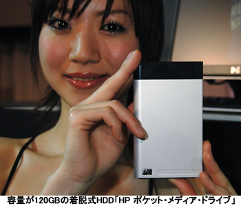 あわせて、オプションの着脱式HDD「HP ポケット・メディア・ドライブ」も発売した。衝撃に強いアルミきょう体を採用し「s3000シリーズ」では専用スロットに差し込んで利用できる。「v7000シリーズ」でもUSB接続で利用可能可能。容量は120GBで価格は1万5750円。
