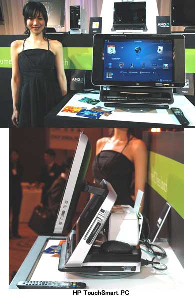そのほか、個人向けパソコンで目玉となるリビング向けディスプレイ一体型デスクトップPC「HP TouchSmart PC」の試作機も発表した。タッチパネル付きの19インチワイドブライトビュー液晶と、HPが開発した独自ソフトを搭載し、画面に触れるだけでソフトが起動できる。スケジュールを登録やデジカメ画像の編集やプリントも指1本で行える。手書き入力やペン入力にも対応する。