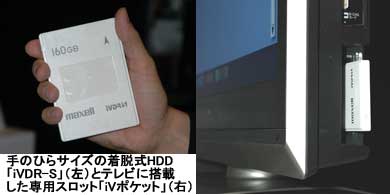 専用のリムーバブルHDD「iVDR-S」は容量が80、160GBの2種類。日立マクセルが4月10日に発売し、価格はオープン。実勢価格は80GBが2万円前後、160GBは3万5000円前後になる見込み。地上デジタル放送推進協会などが認定した著作権保護技術「SAFIA」を搭載しており、内蔵HDDから最大9倍速で映像を移動させることができる。テレビでの直接録画も可能で、録画内容を確認できるライブラリ機能も備えた。
