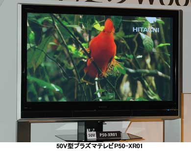 目玉モデルは「X01」シリーズの50V型プラズマ「P50-XR01」と37V型液晶テレビ「L37-XR01」。「P50-XR01」では世界で初めて、シングルスキャン方式で水平1920×垂直1080画素のフルHDを実現したプラズマパネルを搭載する。輝度は1100cd/m2、コントラストは10000:1。パネル前面には、照明などの反射を抑え、コントラストを上げる「ファインブラックフィルター」を新たに開発して搭載した。