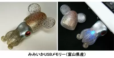 「みみいかUSBメモリー」は、「イカシリーズUSBメモリー」の第1弾「ほたるいかUSBメモリー」に続く第2弾。「ほたるいかUSBメモリー」と同様、ルアー(疑似餌)原型師の丸山達平氏がデザインを手がけ、商品開発は富山大学芸術文化学部の武山良三氏と竹村譲氏とのコラボレーションで行った。