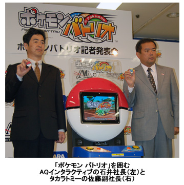 タカラトミー(富山幹太郎社長)は4月11日、AQインタラクティブ(石井洋児社長)と共同で、「ポケットモンスター」の子ども向けアーケードゲーム「ポケモン バトリオ」を開発し、7月に導入すると発表した。両社は初年度で30億円、3年間で100億円の売り上げを見込む。