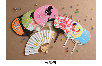 写真やイラストなどを付属の光沢シールや薄和紙シールに印刷し、骨組みに貼り付けるだけで、オリジナルのうちわや扇子を作ることができる。同社のホームページからラベル作成ソフト「らくちんプリント」を無料ダウンロードすれば、簡単にきれいな作品を作ることが可能。